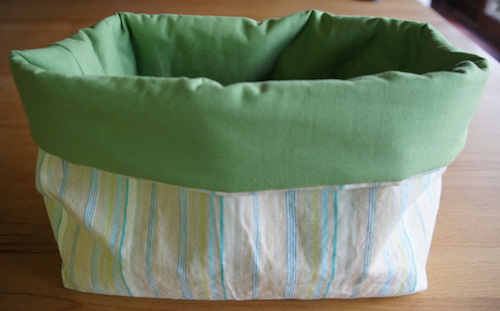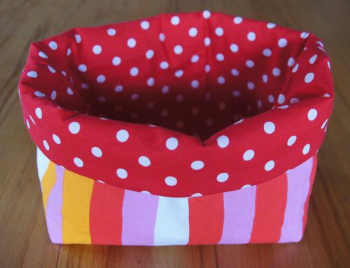 Gefütterter, verstärkter Brotkorb aus gemusterten Baumwollstoffen, auf Wunsch gewachst.