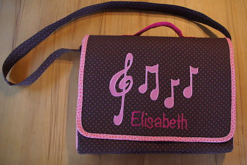 Mit applizierten Noten. Preis: 35 €. Zusätzlicher Name möglich.